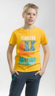 Футболка с коротким рукавом желтая Pelican - комфортная модель с круглым вырезом и короткими рукавами. Изготовленная из хлопковой ткани, она хорошо пропускает воздух, позволяя коже дышать. Оригинальный принт делает футболку яркой и стильной и придаст образу юного модника индивидуальности. Минимальная сумма заказа 1500 руб. Возможен самовывоз. Есть доставка.