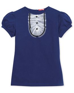 Футболка Pelican декорирована нежным сетчатым жабо, которое декорировано контрастной бархатной тесьмой по краю и тремя пуговицами. Модель приталенного силуэта и рукавами фонариками отлично дополнит школьный гардероб. Сзади застёжка капелька. Минимальная сумма заказа 1500 руб. Возможен самовывоз. Есть доставка.