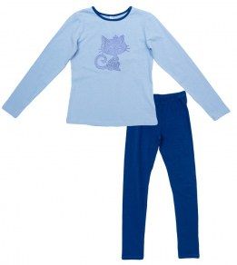 Комплект Play Today для девочки лонгслив, штаны Кошка сделан из трикотажной ткани и декорирован аппликацией из страз в виде кошки на футболке. Минимальная сумма заказа 1500 руб. Возможен самовывоз. Есть доставка.