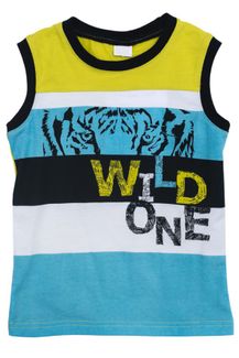 Красочная майка Play Today Wild Оne для модных мальчишек. Выполнена из мягкого высококачественного хлопкового материала. Майка декорирована оригинальным рисунком - глазами тигра. Горловина и рукава с окантовкой контрастного цвета. Минимальная сумма заказа 1500 руб. Возможен самовывоз. Есть доставка.