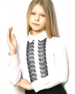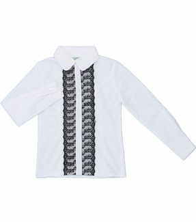 Блузка President School с черной тесьмой по планке белая - модная и стильная. Благодаря контрастной кружевной тесьме вдоль передней планки модель выглядит очень нарядно. Для учениц 1-11 классов. Минимальная сумма заказа 1500 руб. Возможен самовывоз. Есть доставка.
