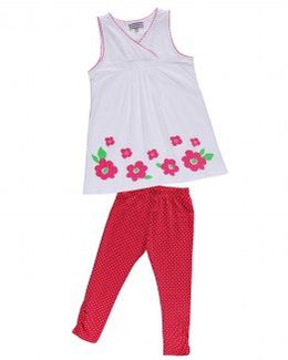 Комплект бело-розовый с цветами Sweet Berry состоит из удлиненной майки свободного кроя и лосин, будет по достоинству оценен юной модницей. Набор выполнен из мягкого и приятного к телу хлопкового трикотажа, декорирован принтом, на груди майки и лосинах выполнена небольшая сборка. Минимальная сумма заказа 1500 руб. Возможен самовывоз. Есть доставка.