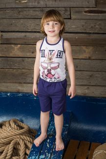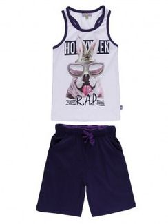Отличный комплект Sweet Berry для мальчика. Майка декорирована симпатичным рисунком - зайчиком в очках. Шорты однотонного цвета, с карманами. Минимальная сумма заказа 1500 руб. Возможен самовывоз. Есть доставка.
