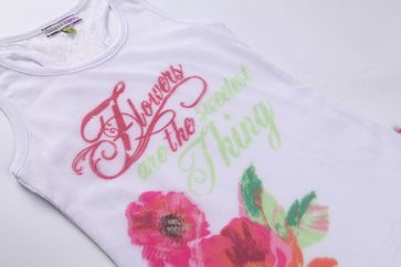 Майка с 3D эффектом белая Sweet Berry выполнена из мягкого и приятного к телу хлопкового трикотажа, будет по достоинству оценена юной модницей. Полочка модели с цветочным принтом дублирована сеткой, на спинке вставка из гипюра. Минимальная сумма заказа 1500 руб. Возможен самовывоз. Есть доставка.