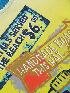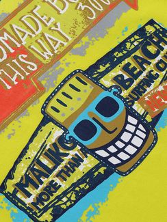 Футболка Sweet Berry Указатели изготовлена из жёлтого трикотажа и декорирована цветным принтом. Горловина обработана контрастной эластичной обтачкой. На полочке от низа к верху цвет изделия плавно переходит от жёлтого к белому. В боковом шве фирменная лейба. Минимальная сумма заказа 1500 руб. Возможен самовывоз. Есть доставка.