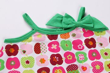 Красивое платье Sweet Berry с принтованным рисунком разноцветных яблок. Выполнено из тонкого и качественного трикотажа. Платье на бретелях и декорировано бантиком зеленого цвета. Минимальная сумма заказа 1500 руб. Возможен самовывоз. Есть доставка.