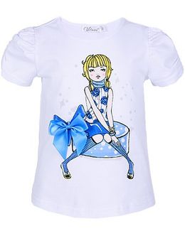 Футболка для девочки Синий бант белая Vittaci отличается эффектным дизайном. Ее можно носить как с юбкой, так и с брюками. Состав ткани: 95 хлопок, 5 спандекс. Минимальная сумма заказа 1500 руб. Возможен самовывоз. Есть доставка.