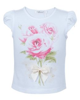 Футболка, выполненная из качественного материала. Изделие с округлым вырезом горловины и короткими рукавами. Великолепный принт украшен стразами и бантом. Минимальная сумма заказа 1500 руб. Возможен самовывоз. Есть доставка.