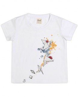 Футболка Ёмаё с принтом белая станет отличным дополнением детского гардероба. Спереди она украшена красивым принтом - сборка птички из оригами. Модель изготовлена из хлопкового трикотажа с лайкрой и имеет округлый вырез горловины. Футболка великолепно сочетается с толстовкой и брюками из этой коллекции. Минимальная сумма заказа 1500 руб. Возможен самовывоз. Есть доставка.