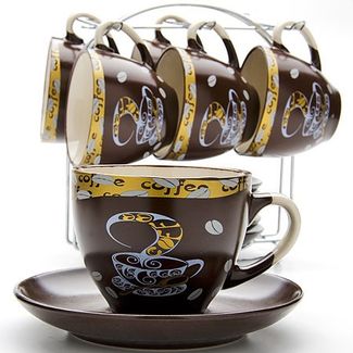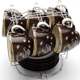 Набор чайный 13 пр LR (x6). Материал: керамика. Цвет: коричневый/желтый/белый. Подставка: металл. Объем: 220 мл. Размер упаковки: 20,2 х 20,2 х 22 см. Упаковка: коробка. Вес: 2,9 кг. Страна производитель: Китай. Чайный набор состоит из 6 чашек, 6 блюдец и металлической подставки. Предметы набора изготовлены из высококачественной керамики в коричневых тонах и оформлены стильным рисунком Кофе". Элегантный дизайн придется по вкусу и ценителям классики, и тем, кто предпочитает утонченность и изысканность. Он настроит на позитивный лад и подарит хорошее настроение с самого утра. Чайный набор идеально подойдет для сервировки стола и станет отличным подарком к любому празднику. Изделия можно компактно хранить на подставке, входящей в набор. Подходит для мытья в посудомоечной машине. " None