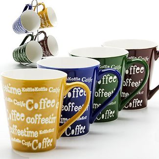 Набор кружек 5 пр LR (x6). Материал: керамика. Цвет: желтый/синий/зеленый/коричневый. Рисунок: белая надпись Coffee". Подставка: металл. Объем: 340 мл. Размер упаковки: 18 х 14,6 х 27,7 см. Упаковка: коробка. Вес: 1,3 кг. Страна производитель: Китай. "Набор из 4-х разноцветных кружек изготовлен из высококачественной керамики и украшен белой надписью Coffee". Изящный дизайн придется по вкусу и ценителям классики, и тем, кто предпочитает современность. Он настроит на позитивный лад и подарит хорошее настроение с самого утра. В комплекте - металлическая подставка с шестью крючками для подвешивания кружек. Набор кружек - идеальный и необходимый подарок для вашего дома и для ваших друзей в праздники, юбилеи и торжества. Подходит для мытья в посудомоечной машине. " None