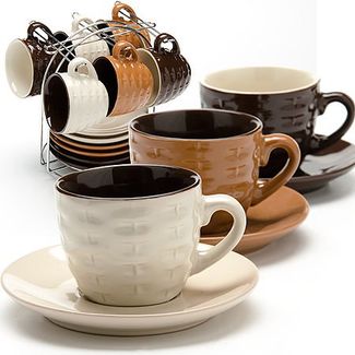 Чайный набор 13 пр LR (x8). Материал: керамика. Цвет: бежевый/коричневый/темно-коричневый. Подставка: металл. Объем: 90 мл. Размер упаковки: 17,5 х 15,4 х 18,7 см. Упаковка: коробка. Вес: 1,66 кг. Страна производитель: Китай. Чайный набор состоит из 6 чашек, 6 блюдец и металлической подставки. Предметы набора изготовлены из высококачественной керамики в коричневых тонах. Элегантный дизайн придется по вкусу и ценителям классики, и тем, кто предпочитает утонченность и изысканность. Он настроит на позитивный лад и подарит хорошее настроение с самого утра. Чайный набор идеально подойдет для сервировки стола и станет отличным подарком к любому празднику. Изделия можно компактно хранить на подставке, входящей в набор. Подходит для мытья в посудомоечной машине. None