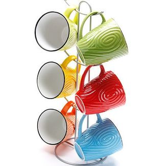 Набор чашек 7 пр LR (x6). Материал: керамика. Цвет: в ассортименте. Подставка: металл. Объем: 325 мл. Размер упаковки: 21,8 х 14,5 х 40 см. Упаковка: коробка. Вес: 1,87 кг. Страна производитель: Китай.Чайный набор состоит из 6 чашек и 1 металлической подставки. Предметы набора изготовлены из разноцветной керамики. Цвета: желтый, оранжевый, зеленый, голубой, салатовый, красный. За счет рельефной текстуры стенок, кружки приятно держать в руках. Красивый дизайн набора придется по вкусу ценителям классики. Он настроит на позитивный лад и подарит хорошее настроение с самого утра. Кружки можно мыть в посудомоечной машине и использовать в микроволновой печи. None