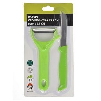 - Набор 2 пр. (овощечистка 13,5см, нож 15,5см), пластик, металл по выгодной цене 119 р. руб.;