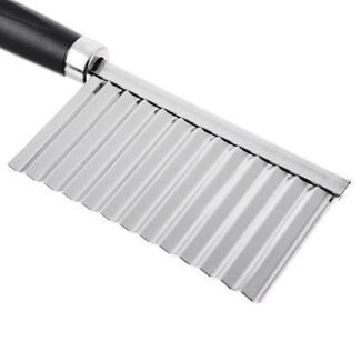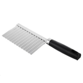 Представленный нож–слайсер для фигурной нарезки размером 19х6см имеет удобную ручку из прочного пластика и лезвие из нержавеющей стали с выпуклыми зубцами по всему полотну.