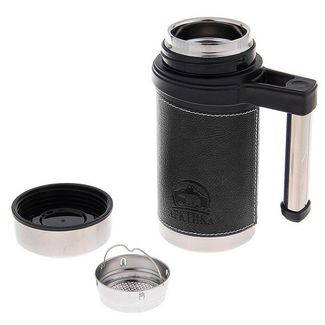 Мы давно привыкли к тому, что чашкой для каждого термоса служит его собственная крышка. Это значит, что надо раскрыть термос, налить напиток, поставить термос и только потом можно приступать к чаепитию. Во многих ситуациях это не очень удобно, например в автомобиле или в электричке. Но разве можно еще более упростить процесс? Можно! Для этого и была создана термос-кружка Арктика. Между внутренней колбой и внешним корпусом (выполненными из нержавеющей стали марки 18/8) находится вакуум, позволяя очень долго сохранять тепло. Можно просто снять крышку и пить прямо из термокружки! Но не только пить. Широкая горловина этой универсальной термопосуды позволяет хранить в ней и еду. От своих собратьев термос-кружка Арктика отличается одной интересной особенностью – наличием в горловине ситечка, которое можно использовать для заваривания чая. Это небольшое и достаточно простое устройство очень полезно в походных условиях. Заварив чай, можно запросто избавиться от использованных чаинок, и пить чистый ароматный напиток. Ситечко можно легко снять и оставить дома, если знаете, что оно Вам не пригодится. Помимо этого, термос-кружка обладает улучшенными теплосберегающими характеристиками за счет улучшенной конструкции. Универсальность, вместительность и надежность – то, чем славятся изделия компании Арктика, нашли свое место и в этой замечательной термокружке. Особенности: