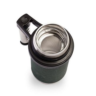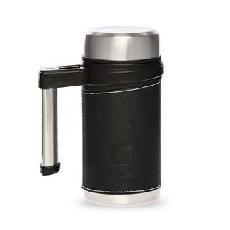 Корпус из нержавеющей стали марки 18/8 Съёмное ситечко Накладка из кожзаменителя (съёмная) Вакуумная теплоизоляция между колбой и корпусом Плотно закручивающаяся крышка с теплоизоляционным материалом Ручка на корпусе для более комфортного использования Универсальная (подходит для напитков и горячих блюд)