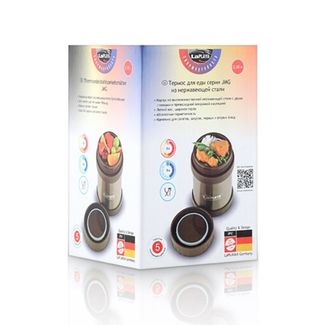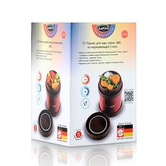 Корпус из высококачественной нержавеющей стали с двумя стенками и превосходной вакуумной изоляцией; Легкий вес, широкое горло; Абсолютная герметичность; Идеально для салатов, закусок, первых и вторых блюд; Изготовлено в Китае под контролем компании IPV Gmbh