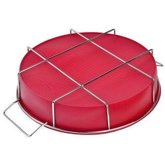 Форма для выпечки круглая размером 25х6 см из силикона с рельефным дном на хромированной металлической подставке с ручками, предназначена для выпечки изделий из теста в духовых шкафах. None Возможен самовывоз. Есть доставка.