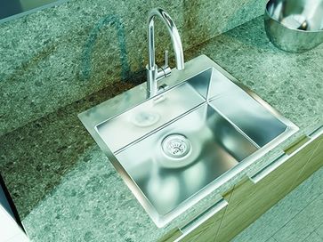 Кухонная мойка для установки в шкаф от 60 см. Варианты установки на столешницу/в один уровень, выполнена из сатинированной стали 1.0 мм. None