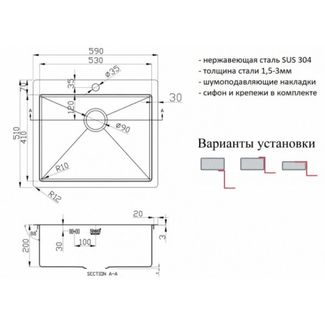 Закажите Мойка Zorg PVD 5951 GRAFIT у компании Сантех Россия в России на портале Alloy: