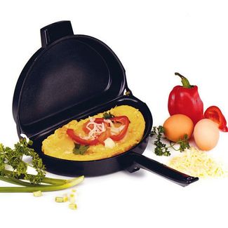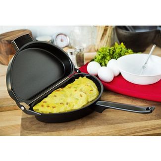 Эта необычная сковорода предназначена специально для жарки омлета. или фриттаты – итальянской вариации на тему омлета. Для того, чтобы добиться равномерной прожарки изделия нет нужды пользоваться лопаткой, благодаря складной конструкции, достаточно просто перевернуть омлетницу на другую сторону.