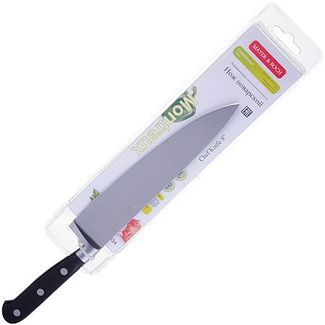 Нож поварской МВ (х72). Материал лезвия: нержавеющая сталь. Материал ручки: пластик-АБС/ нержавеющая сталь Длина ножа: 32 см (лезвие 19 см). Размер упаковки: 39 х 6 х 2 см. Упаковка: блистер. Вес: 186 г. Страна производитель: Китай.Нож MAYER& BOCH с лезвием из высококачественной нержавеющей стали станет незаменимым помощником на Вашей кухне. Сечение ножа - клинообразно, что позволяет режущей кромке клинка быть продолжительное время острой. Поверхность клинка легко моется, не впитывает и не «передает» запахи пищи при нарезке различных продуктов. Эргономичная рукоятка ножа удобно ложится в ладонь, обеспечивая безопасную работу, комфортное положение в руке, надежный захват и не дает ножу скользить при использовании. None
