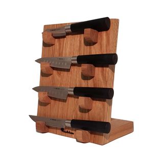 Подставка для 4-х охотничьих ножей. Изготовлена из массива дуба. Цвет - дуб натур. Опоры для ножей снабжены прорезями для фиксации клинков. Расстояние между опорами 35 мм. Ручная работа. None Страна производства: Россия Возможен самовывоз. Есть доставка.