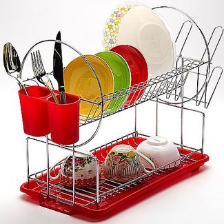 Сушилка для посуды MB (х6). Количество уровней: 2. Корпус: хромированная сталь. Поддон д/воды: полипропилен. Подставка д/приборов: полипропилен. Цвет: красный. Размер упаковки: 43 х 9,5 х 24 см. Упаковка: коробка. Вес: 1,46 кг. Страна производитель: Китай. Двухъярусная сушилка для посуды MAYER& BOCH выполнена из высококачественной хромированной стали и пластика. В сушилке предусмотрены отделения для тарелок, чашек и столовых приборов. Благодаря конструкции с вместительным поддоном для сбора воды, Вы не будете тратить время на вытирание посуды после мытья. Стальная часть конструкции защищена от коррозии хромированным покрытием, что гарантирует ей продолжительное время эксплуатации и эстетичный внешний вид. Сушилка для посуды станет незаменимым помощником на кухне. Компактность сушилки позволит расположить ее по Вашему усмотрению - на свободном крыле мойки, на столешнице или в навесных шкафах кухонного гарнитура. Оригинальный и современный внешний вид идеально дополнит интерьер кухонного пространства. None