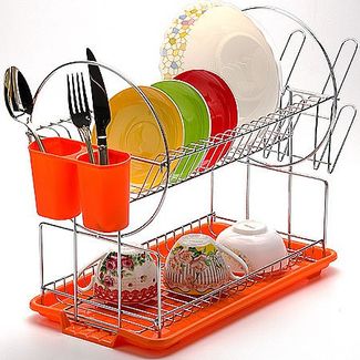 Сушилка для посуды MB (х6). Количество уровней: 2. Корпус: хромированная сталь. Поддон д/воды: полипропилен. Подставка д/приборов: полипропилен. Цвет: оранжевый. Размер упаковки: 43 х 9,5 х 24 см. Упаковка: коробка. Вес: 1,46 кг. Страна производитель: Китай. Двухъярусная сушилка для посуды MAYER& BOCH выполнена из высококачественной хромированной стали и пластика. В сушилке предусмотрены отделения для тарелок, чашек и столовых приборов. Благодаря конструкции с вместительным поддоном для сбора воды, Вы не будете тратить время на вытирание посуды после мытья. Стальная часть конструкции защищена от коррозии хромированным покрытием, что гарантирует ей продолжительное время эксплуатации и эстетичный внешний вид. Сушилка для посуды станет незаменимым помощником на кухне. Компактность сушилки позволит расположить ее по Вашему усмотрению - на свободном крыле мойки, на столешнице или в навесных шкафах кухонного гарнитура. Оригинальный и современный внешний вид идеально дополнит интерьер кухонного пространства. None
