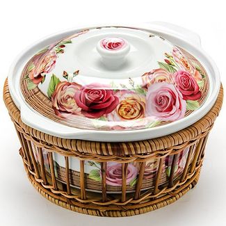 Кастрюля + корзинка МВ(x4). Форма: круглая. Кастрюля: фарфор. Цвет: белый. Рисунок: розы. Объем:2500 мл. D 23 см. Корзинка: ротанг. Размер упаковки: 24,6 х 12,5 х 24,9 см. Вес: 2,25 кг. Страна производитель: Китай. Кастрюля c крышкой MAYER& BOCH выполнена из качественного фарфора белого цвета. Кастрюля имеет классическую круглую форму и небольшие удобные ручки. Поверхность украшена изображением цветов. В комплект также входит плетеная корзинка из ротанга, выполняющая роль оригинальной подставки для кастрюли. Фарфоровая кастрюля прекрасно подойдет для запекания овощей, мяса и других блюд, а благодаря своему оригинальному дизайну, она, несомненно, украсит ваш стол. Посуда не впитывает посторонние запахи, не имеет труднодоступных выступов или изгибов, которые накапливают грязь, и легко чистится. Фарфор выдерживает высокие перепады температуры, поэтому такую кастрюлю можно использовать в духовке, микроволновой печи, а также для хранения пищи в холодильнике. Подходит для мытья в посудомоечной машине. В комплекте: кастрюля, крышка, плетеная корзинка. None