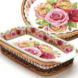 Форма +корзинка МВ(x8). Форма для запекания: фарфор. Цвет: белый. Рисунок: розы. Объем: 1500 мл. Размер: 35,5 х 18 х 5 см. Корзинка: ротанг. Размер упаковки: 36,2 х 20,5 х 7,2 см. Вес: 1,38 кг. Страна производитель: Китай. Прямоугольная форма MAYER& BOCH выполнена из качественного фарфора белого цвета. Поверхность украшена изображением цветов. К форме прилагается плетеная корзинка из ротанга, выполняющая роль оригинальной подставки. Форма прекрасно подойдет для запекания овощей, мяса и других блюд, а благодаря своему оригинальному дизайну, она, несомненно, украсит ваш стол. Посуда не впитывает посторонние запахи, не имеет труднодоступных выступов или изгибов, которые накапливают грязь, и легко чистится. Фарфор выдерживает высокие перепады температуры, поэтому такую форму можно использовать в духовке, микроволновой печи, а также для хранения пищи в холодильнике. Подходит для мытья в посудомоечной машине. В комплекте: 1 форма, 1 плетеная корзинка. None