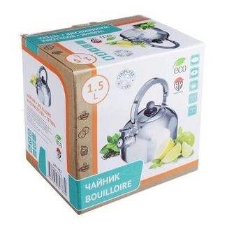 Чайник объемом 1,5 л изготовлен из нержавеющей стали, оснащен несъемным свистком и бакелитовой ручкой, с капсульным дном, подходит использования на всех типах плит, включая индукцию. None Возможен самовывоз. Есть доставка.