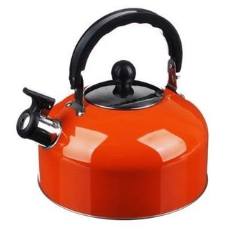 Чайник объемом 2,3 л изготовлен из нержавеющей стали и имеет 4 варианта внешней окраски - сиреневый, красный, оранжевый, зеленый, оснащен несъемным свистком, с черной бакелитовой ручкой, с однослойным дном, подходит использования на всех типах плит, включая индукцию. None Возможен самовывоз. Есть доставка.