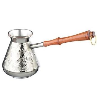 Медная турка для кофе объемом 540 мл хорошо проводит тепло и обеспечивает быстрое приготовление двух порций классического напитка. Материал не боится ржавчины и механических повреждений. Корпус джезвы декорирован изящными орнаментами. Добротная ручка выполнена из натурального дерева. Металлическое кольцо позволяет хранить посуду в подвешенном положении. None Возможен самовывоз. Есть доставка.