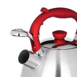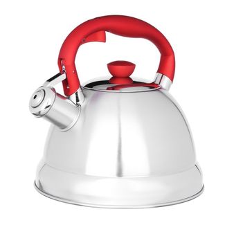 Чайник объемом 2 л необычной формы изготовлен из матовой нержавеющей стали, оснащен несъемным свистком на кнопке и бакелитовой ручкой, с капсульным дном, подходит использования на всех типах плит, включая индукцию. None Возможен самовывоз. Есть доставка.