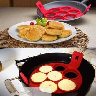 Весь секрет данного приспособления кроется в том, что форма Fantastic Flippin "Мечта хозяйки" изготовлена из пищевого силикона к которому не пристает тесто, а плоское силиконовое кольцо, которое присутствует в каждом углублении удерживает тесто во время переворачивания. Силиконовая форма имеет 7 углублений диаметром 7,5 см. Теперь приготовление оладьев, котлет и яичницы станет быстрым, простым и очень интересным! Характеристики силиконовой формы: Материал: пищевой силикон Диаметр: 22-23 см (без учета ручек) 7 отделений, диаметр: 7,5 см Можно использовать в духовке Температурный диапазон от -30 до +230 градусов Производство: Китай None Страна производства: Китай Возможен самовывоз. Есть доставка.