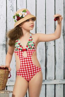 Купальник-трикини Claire Arina Festivita - слитная модель. Верх – мягкие фиксированные треугольники на галстучных завязках на шее и завязках-спагетти на спине. Соединен широкой фигурной деталью с плавками комфортной посадки. Сочный яркий микс цветочной вишни и нестандартной контрастной клетки не оставит равнодушным ни мам ни маленьких модниц.