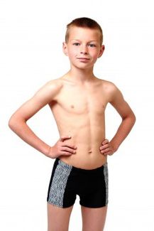 Плавки-шорты модного кроя для мальчиков. Контрастные боковые вставки. Пояс на резинке со шнуром. Материал устойчив к хлорированной и морской воде. Минимальная сумма заказа 1500 руб. Возможен самовывоз. Есть доставка.