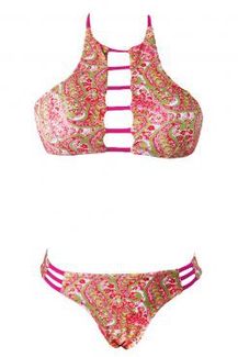 Яркий купальник стильного дизайна идеально подойдет для летнего отдыха и подарит Вам беззаботное настроение! Лиф с поролоновыми вкладышами завязывается на шее и спинке. Трусики низкой посадки. В наличии XL 1 шт None Есть доставка.
