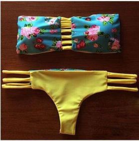 Модный купальник с цветочным рисунком! Лиф-топ необычного дизайна с поролоновыми чашками. Трусики низкой посадки. В наличии M 1 шт None Есть доставка.