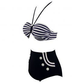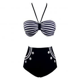 Создайте беззаботное летнее настроение с помощью эффектного купальника, выполненного в морском стиле. Лиф на бретель-петле с завязками сзади. Плавки комфортной высокой посадки с декоративными пуговичками. В наличии S 1 шт None Есть доставка.