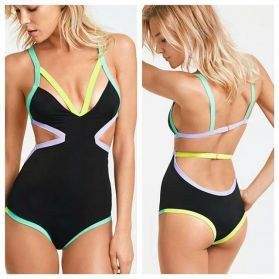 Стильное монокини необычного дизайна. Изделие черного цвета, декорировано разноцветными резинками. На спинке застежки. Такая модель отлично подойдет для пляжного отдыха. В наличии S 1 шт, L 1 шт, XL 1 шт None Есть доставка.