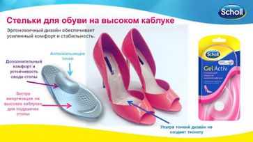 - Scholl GelActiv для обуви на высоком каблуке по выгодной цене 652 р. руб.;