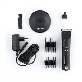 Окантовочный триммер Dewal Black Mini 03-066 чисто и без усилий срезает волос. Машинку применяют для окантовочных работ, оформления точных контуров прически, усов, бороды или бакенбардов, подчистки после машинки или оформления плавных переходов Skin Fade. Триммер Dewal Black Mini 03-066 может работать от встроенной батареи или при подключении к электросети. Смешанный тип питания упрощает работу парикмахера при работе без проводов и помогает закончить работу с разрядившимся до окончания стрижки аккумулятором. Литий-ионный аккумулятор работает до 3 часов без подзарядки. Полная зарядка аккумулятора занимает 1,5 часа. Литиевые батареи не теряют емкость при частых или неполных зарядках. Отсутствие эффекта «химической памяти» продлевает срок работы батареи. Ножевой блок дает широкий 41-миллиметровый срез длиной 0,3 мм. Быстросменный нож легко заменять или очищать. Другие уровни среза получают с комплектными сдвоенными насадками 2-3 или 4-5 мм. Рифление на гребенке ножа ускоряет теплоотведение и лезвия медленнее нагреваются. А глубокие зубцы повышают удобство работы над расческой. За счет уменьшенного веса до 210гр и беспроводного питания инструмент не переутомляет кисть при продолжительных работах. Нижняя часть корпуса сделана из фактурного пластика для уменьшения скольжения машинки во влажных руках. Кнопка питания вынесена в центральную часть корпуса. Отцентрированное положение переключателя одновременно удобно для работы одной рукой и исключения случайных нажатий. Комплектация: