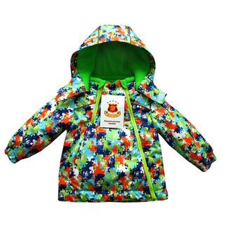 Куртка "Ералаш" на весну/осень.Верхняя ткань: водоотталкивающая, плащевая.Утеплитель – 1 слой синтепона-люкс 150 г/м2 (аналог холлофан).Подкладка: полочка, спинка – мягкий флис, рукава – хлопок (размеры 80-98), полиэстер (размеры 104, 110).Куртка имеет 2 молнии: короткую – неразъемную и длинную – разъемную. На полочке карман, рукава на резинке. По низу изделия проложен шнур для утяжки. Капюшон на кнопках, при необходимости отстёгивается, по краю проложен шнур со стопором.Куртка выполнена в яркой цветовой гамме.Температурный режим от +5 до -5. None