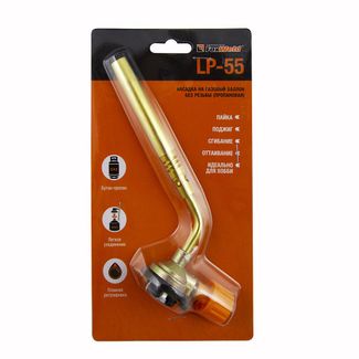 Насадка-горелка на газовый баллон FOXWELD LP-55 применяется для разных операций: поджиг, нагрев поверхности, пайка. Оснащена регулятором уровня пламени. None