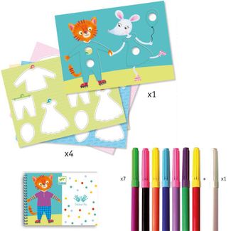 Набор для творчества Djeco Одень животных - прекрасный подарок для развития творческих фантазий ребенка. Дети смогут раскрашивать гардероб для забавных зверюшек разноцветными фломастерами, а с помощью белого цвета менять оттенки одежды и дополнять их оригинальными узорами. Такой набор поможет развить творческое мышление, воображение и дизайнерские способности у детей. Минимальная сумма заказа 1500 руб. Возможен самовывоз. Есть доставка.
