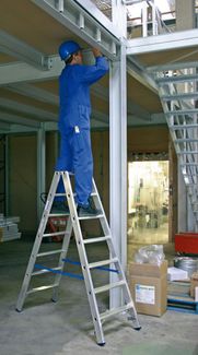 Двусторонняя алюминиевая стремянка 2х7 ступенек STABILO для профессионального применения: