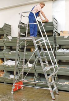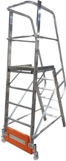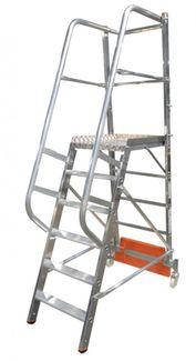 большая алюминиевая рифленая платформа 650 х 600 мм.;различная ширина поперечных траверс с грузовым балластом обеспечивают спокойную работу на большой высоте при небольшой занимаемой площади;уверенный подъем по алюминиевым рифленым ступеням шириной 80 мм.;поручни с двух сторон на лестнице и перила с трех сторон на платформ;применяется в узких проходах между стеллажами, для работы на высоте более 4 метров и ширине прохода 820 мм.высокопрочное соединение ступеней с боковинами;два интегрированных ролика для легкого передвижения лестницы;поставка осуществляется в предварительно собранных модулях;продукт сертифицирован в строгом соответствии с ГОСТ Р 58752-2019 и DIN EN-131.